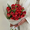 Букет из 21 пионовидного красного тюльпана (Голландия) в матовой упаковке