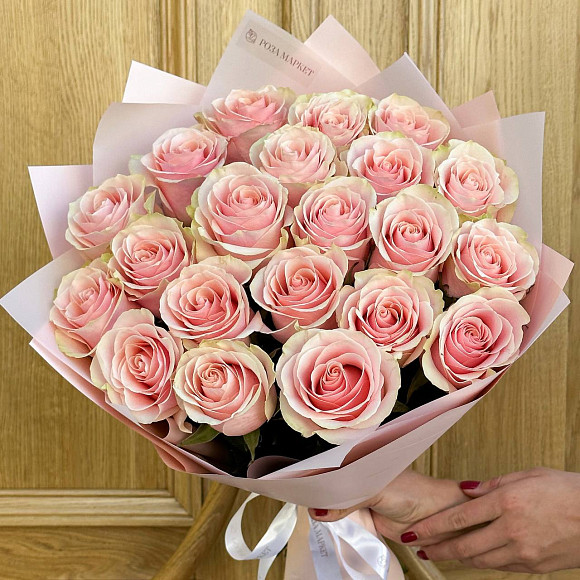 Букет из 21 розового тюльпана (Голландия) в матовой упаковке