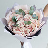Букет из розовой розы Пинк Мондиал (Эквадор) с эвкалиптом в матовой упаковке