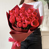 Букет из 25 красных тюльпанов в фирменной упаковке