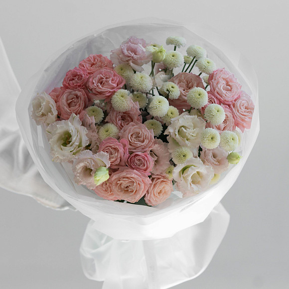 Букет из 7 кустовых хризантем в фирменной упаковке