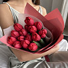 Букет из 15 алых тюльпанов в фирменной упаковке
