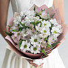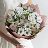 Букет из 3 ромашковых хризантем и 4 альстромерий в фирменной упаковке