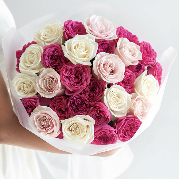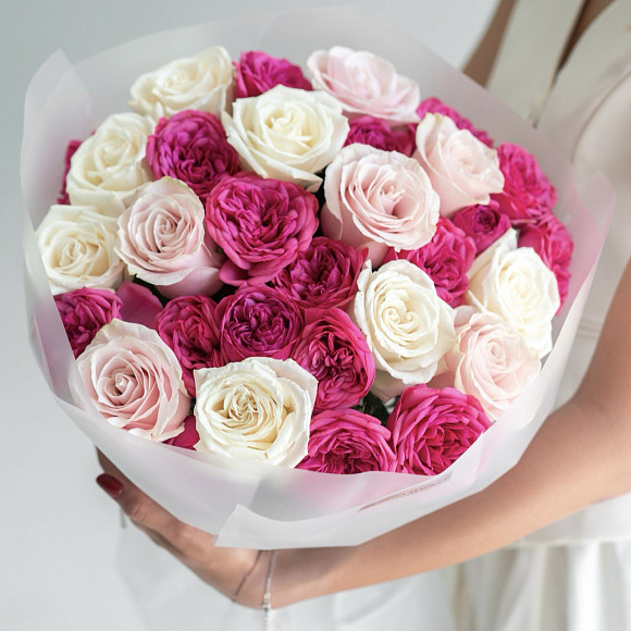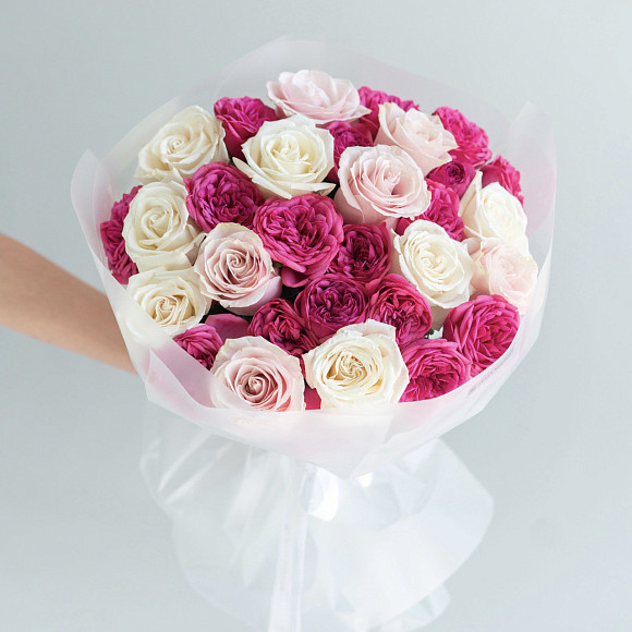 Оттенок и размер бутона могут немного отличаться от представленного на фото. Фото готового букета высылается при согласовании услуги с оператором.
