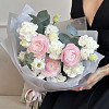Букет из розовых ранункулусов, эустомы и диантусов в упаковке